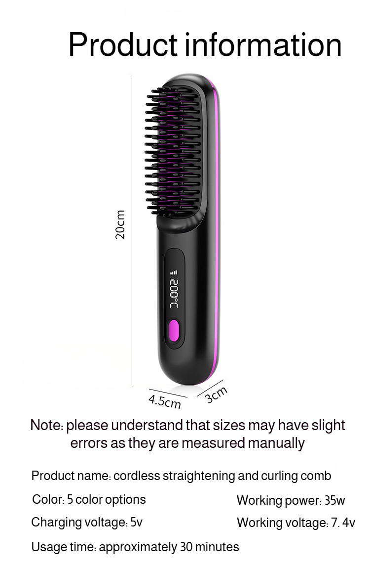 Portable Straightening and Curling Cordless Negative Ion comb